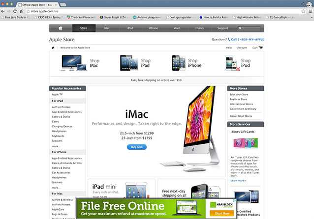 Apple's Store website at one time allowed you to browse the site before you ordered products with HTTP. Zachary Henkel captured this image of his Internet Service Provider CMA Communications injecting an H&R Block ad on to Apple's website.